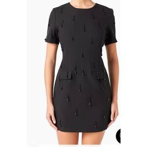 Anthropologie Endless Rose Women' Premium Black Short Sleeve Beaded Min…