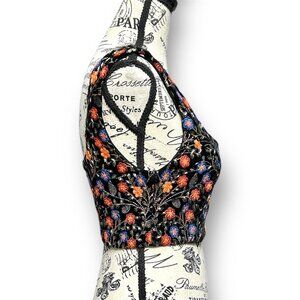 Anthropologie Endless Rose XS Black Velvet Floral Embroidered Top Whimsigoth NWT