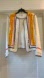 Anthropologie Brand English Factory Rayon/Nylon/Cotton Jacket. White Color with Black, Golden Yellow, and Red Accents. Boho Style and Lots of Texture and Interest in This Style. Pop pops, Ric Rac, and Fringe. Excellent Used Condition With No Flaws Noted. Size Small. Measurements Listed Below and in Pictures.
