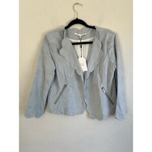 English Factory Sky Blue Scalloped Open Front 3/4 Sleeve Blazer Jacket, Size Medium