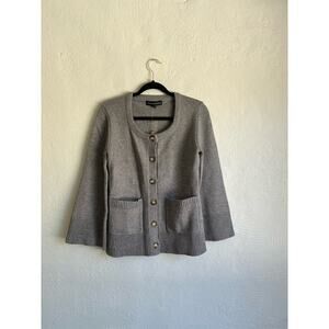 English Factory Woman Gray Women's Round Neck Cardigan, Size Small (Fits S, M)