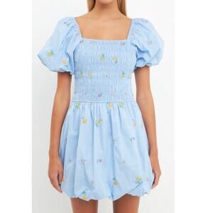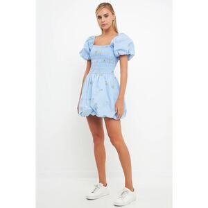English Factory Woman SMOCKED DRESS WITH BALLOON SLEEVES, Size Small