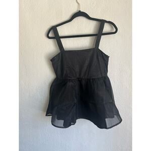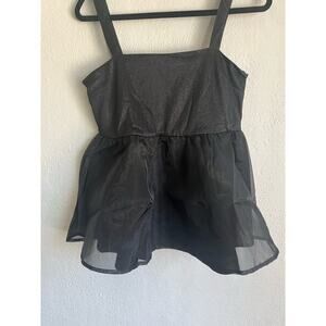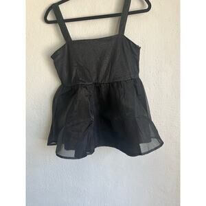 English Factory Women’s Black Sparkle Glitter Empire Tulle & Organza Top Size S