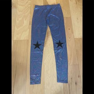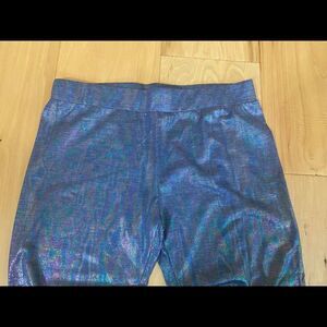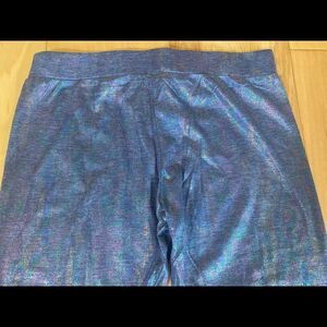 So sleek with a light dusting of shimmer! These blue English Rose Festival Star size medium iridescent hologram leggings are so lightweight and soft to the touch. Shimmery on the outside but soft on the inside! Elastic waist! So comfy! New and never worn! In packaging! From a smoke free home!