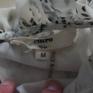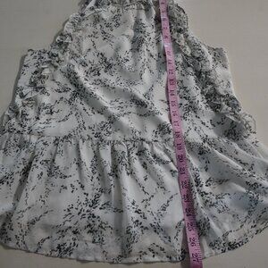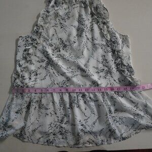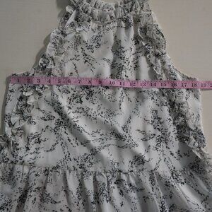 Anthropologie Entro Haulter Peplum Blouse Size M Color White Black floral Ruffle detail Button at back of neck