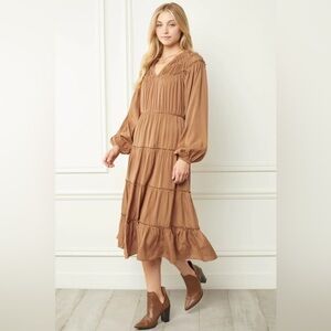Anthropologie Entro Long-Sleeved Tiered Midi Dress