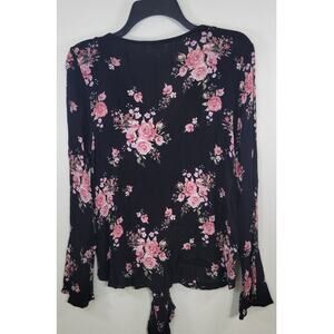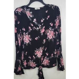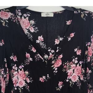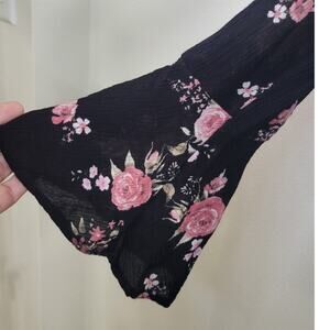 Anthropologie Entro Womens Medium Black & Pink Floral Casual Boho Cottage Core