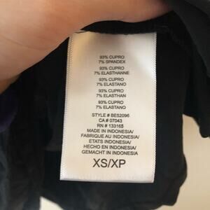 In good preowned condition. Super soft and comfortable cupro/spandex fabric. Ruffled bodice. Pullover styling. Color is a washed black/almost charcoal grey.