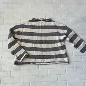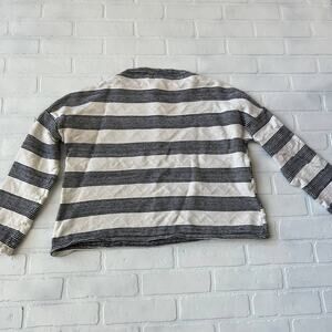 Anthropologie Eri + Ali Crop Stripe Cotton/Spandex Knit Long Sleeve Top-sz L