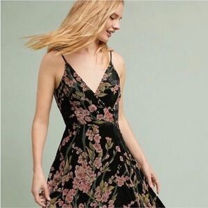 Anthropologie Eri + Ali Floral Velvet Burnout Slip Dress