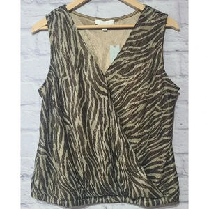 Anthropologie Eri + Ali Kasi Top Blouse Womens Large Petite Zebra Print Metallic