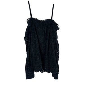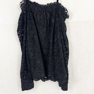 Anthropologie Eri + Ali Romona Black Chenille Lace Off the Shoulder Top SMALL