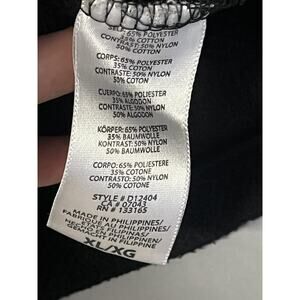 Materials: Body 65% polyester, 35% cotton; Contrast sleeves 50% nylon, 50% cotton.