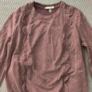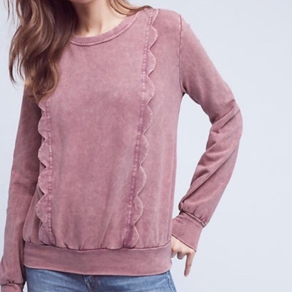 Anthropologie Erin + Ali Scalloped Trim Acid Wash Pullover