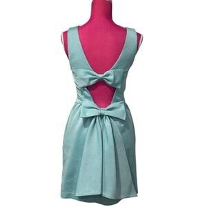 Anthropologie Erin Fetherstone Tiffany Blue Bow Back Party Dress EUC