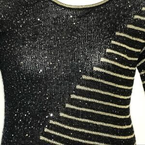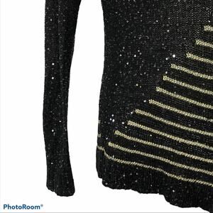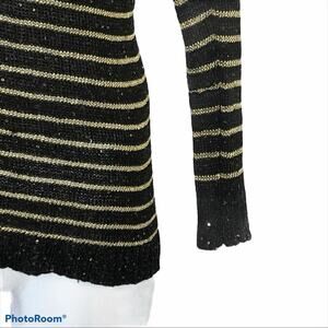 Anthropologie Escio Asymmetrical Metallic Gold and Black Sequined Sweater Small