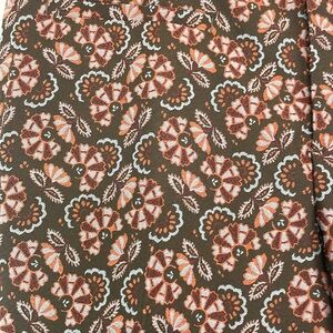 Anthropologie Essential Slim Brown Motif Jacquard print pants. US size 14. In good preowned condition. No stains. Faux front and back pockets. Brown with pinkish design. Perfect for the fall season coming up. High rise. Waist is 17.5 inches across. (35) inches. Rise is 11.5 inches. Inseam is 26 inches. Comes from a smoke free home.