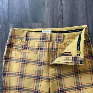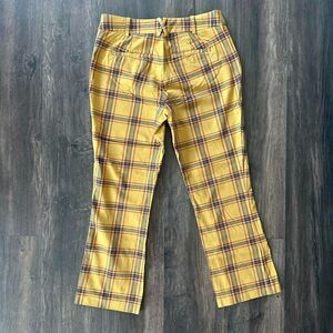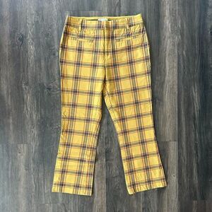 Anthropologie Essential Slim Kick Trouser Mustard Plaid Ankle Crop Stretchy Sz 6