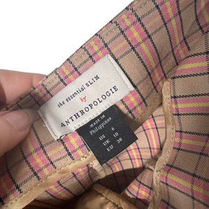Anthropologie Essential Slim Tan Plaid Ankle High Rise Pants 6