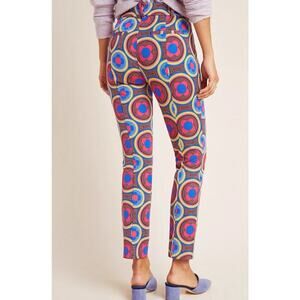 Anthropologie Essential Slim Trouser Pant Sz 4 Rose Psychedelic Geometric Retro
