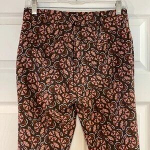 These are a versatile, machine washable pant designed to be comfortable and polished. The brown and multicolor jacquard pattern is eye-catching and perfect for casual occasions. The pants feature a zip, button, and hook & eye closure, along with a flat front and tapered leg style. Perfect for winter, fall and spring.