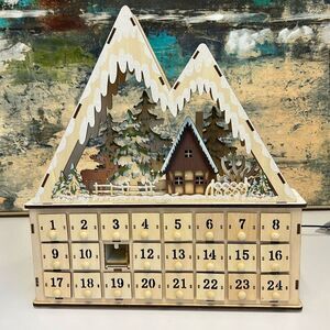 Celebrate the season in style with this handcrafted, handpainted wooden advent calendar from Anthropologie. Featuring an enchanting, snow-dusted woodland scene, this exclusive piece brings cozy charm and festive magic to your holiday décor.