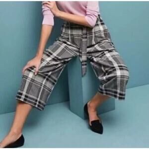 Anthropologie Ett: Twa Luca Wide Leg Textured Academia Plaid Cropped Pant
