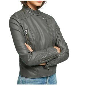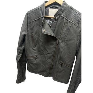 Anthropologie Ett:Twa Gray Vegan Leather Cropped Moto Jacket