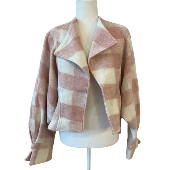 Anthropologie Ett:Twa Pink Buffalo Check Thick Open Shacket Coatigan Size Small