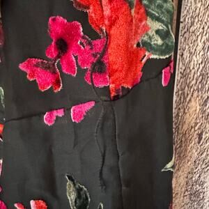 Ett:Twa by Anthropologie Jumpsuit Crushed Velvet Floral Black Red