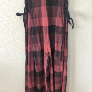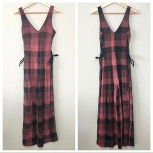 Anthropologie Ett:twa Red & Black Checked Plaid Wide Leg Crop Jumpsuit 0