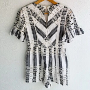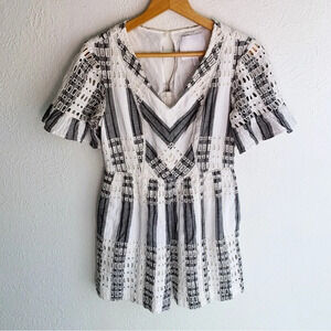 Anthropologie Ett:twa Striped Eyelet Romper Blue White Sz 2