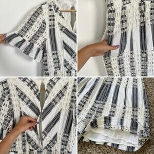 Anthropologie Ett:twa Striped Eyelet Romper Short Sleeve White Gray Blue 10