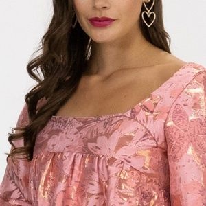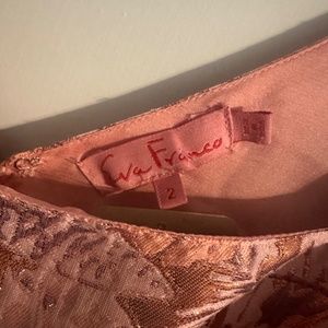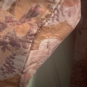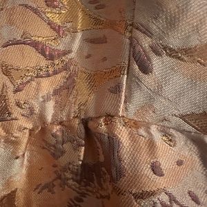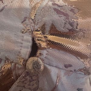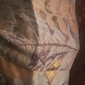 Purchased to wear to a wedding, but decided against- of note metallic threads do come loose, but appears to be nature of fabric. Small amount of paint removed from back of zipper during attempts to zip but not visible and clasp and buttons all intact
