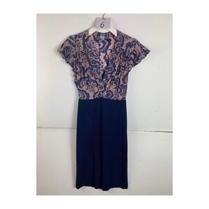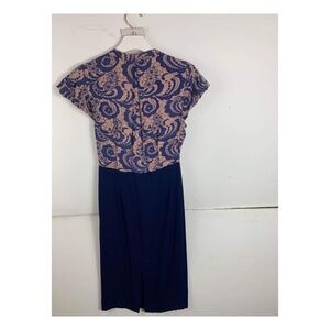Anthropologie Eva Franco Blue Office Bodycon Fitted V-neckline Lace Midi Dress
