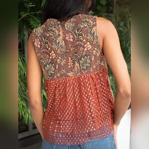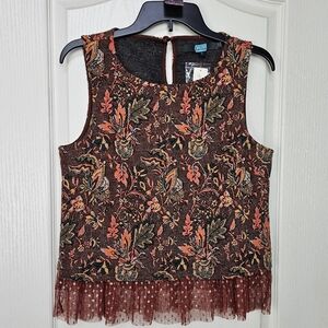 Anthropologie Women's Eva Franco Brown Floral Jacquard Tulle Sleeveless Top SMALL