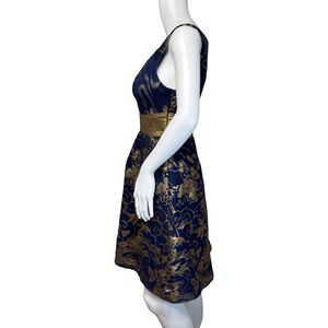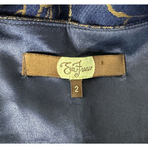 Anthropologie Eva Franco Dress Womens 2 Blue Gold Floral ShangriLa Kora Jacquard