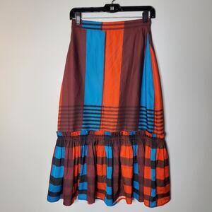 Questions? Leave a comment below!Anthropologie Eva Franco Flounced Midi Skirt bright colorful