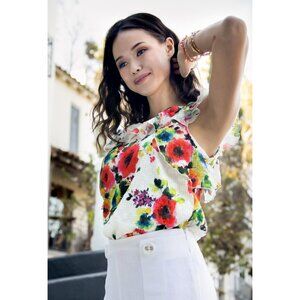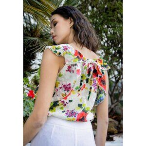Anthropologie Eva Franco Greta Ruffled Short Sleeves Top in Floral Vienna Bloom