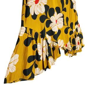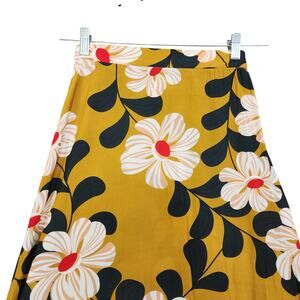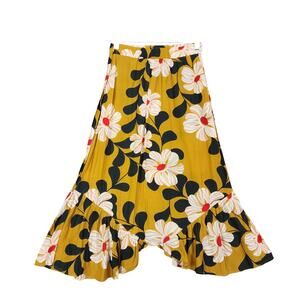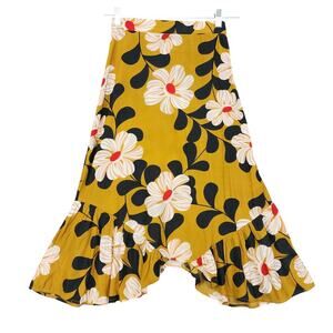 Anthropologie Eva Franco Ikebana Floral Midi Skirt Size 4 Yellow Flounce Hem