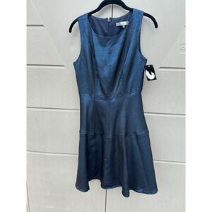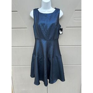 Anthropologie Eva Franco NEW Haven Metallic Blue Fit And Flare Dress Size 4