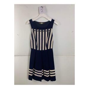 Anthropologie Eva Franco Navy Blue Sleeveless Round Beckline Stripes Mini Dress
