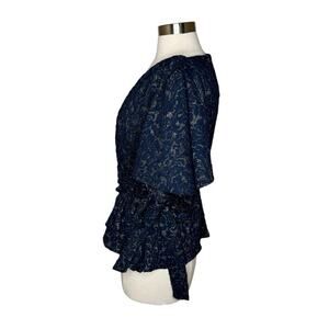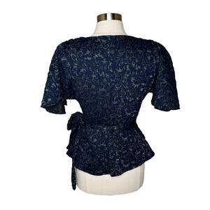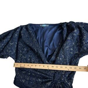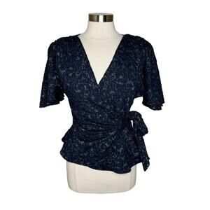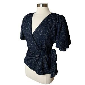 Anthropologie Eva Franco Navy Gold Shimmer Wrap Blouse Women’s Size 6