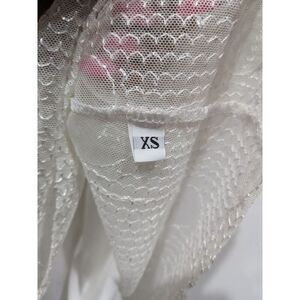 Eva Franco Quincy Sheer Mesh Sequin Circle Embroidered Short Sleeve Top, Size XS