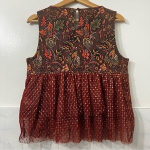 Anthropologie Eva Franco S Brown Jacquard Tulle Boho Feminine Sleeveless Top