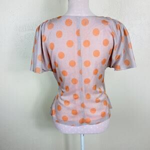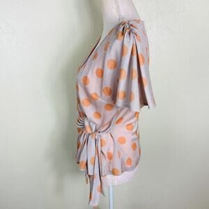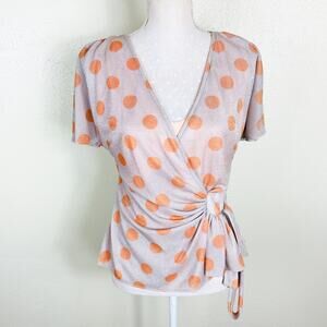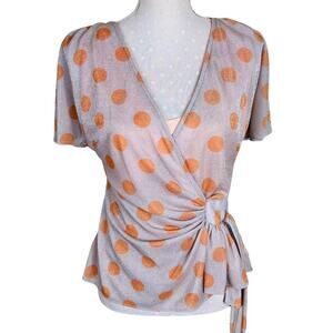 Anthropologie Eva Franco Sweetwater Wrap Top Size S Metallic Silver Polka Dot