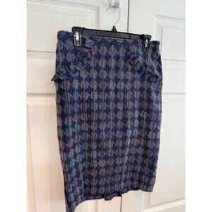 Anthropologie Eva Franco Textured Navy Multi Pencil Skirt – Size 10