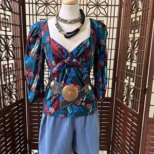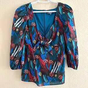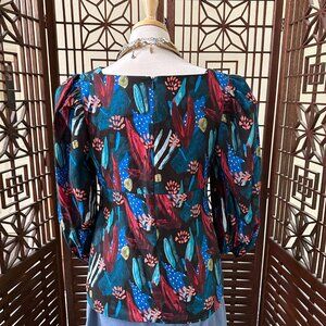 Anthropologie Eva Franco Tropical Sweetheart Puff Sleeve Blouse Sz 8
