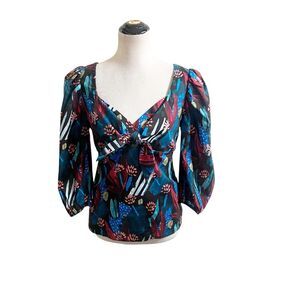 Anthropologie Eva Franco Tropical Sweetheart Tie-Front Blouse Size 6 Bohemian
