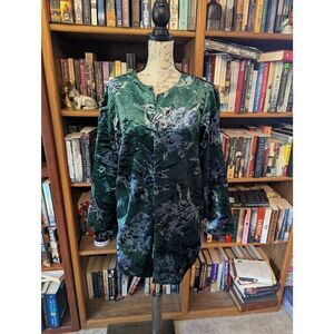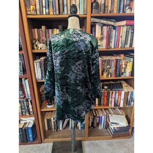 Anthropologie Eva Franco Women's Size Medium Green Floral Velvet Car Coat Jacket